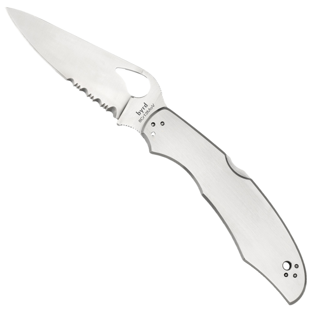The business end of this amazingly capable knife consists of a full-flat-ground Combination Edge & Plain Edge blade that offers powerhouse cutting performance on all types of materials, including rope and webbing. Machined from 8Cr13MoV stainless steel, it features the byrd brand’s signature Comet-shaped hole for rapid, fully ambidextrous one-handed opening.