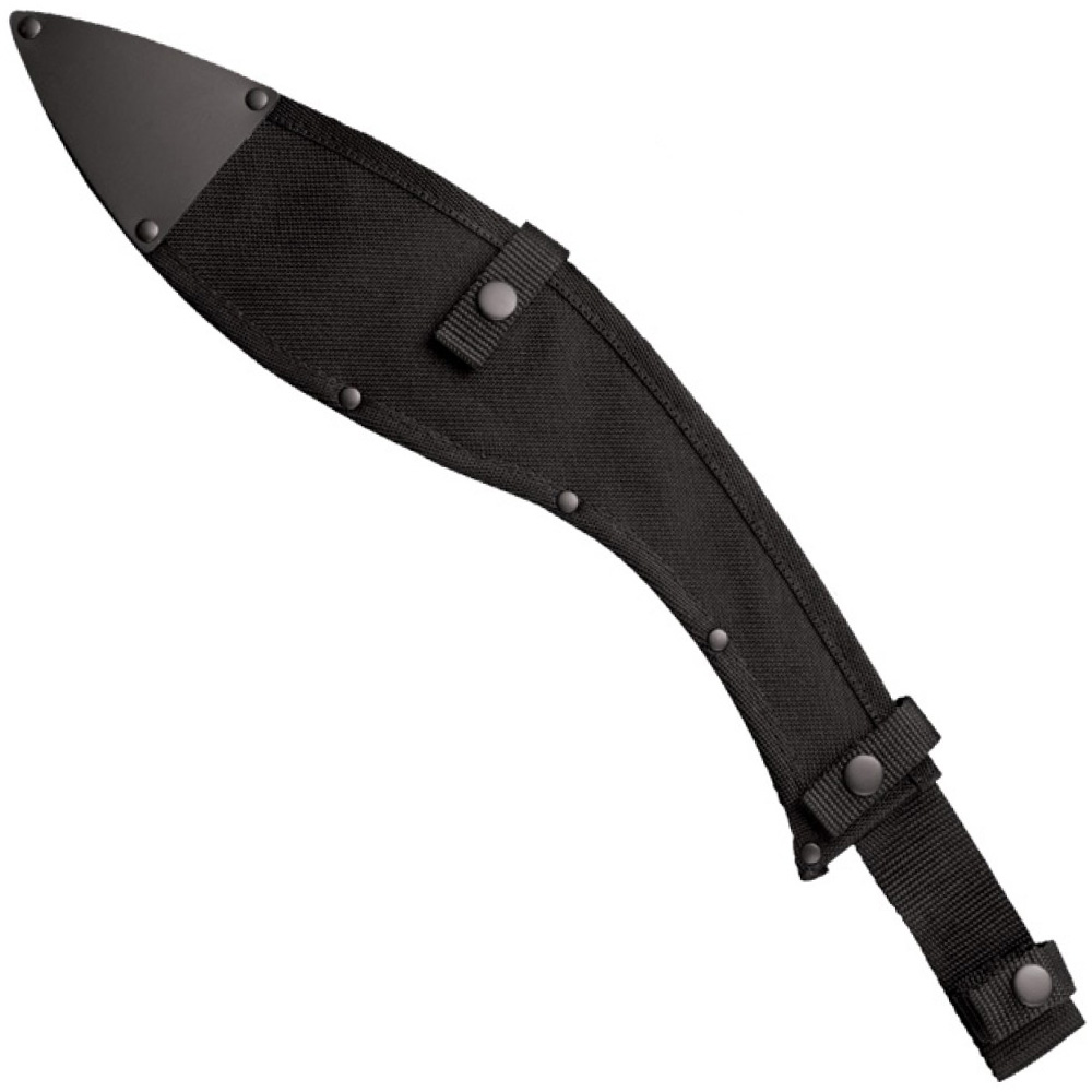 If you were suddenly castaway on a desert island or stranded in the wilderness or a jungle, what's the one tool you would want at your side? The answer is a good machete. You see the machete, over the last three centuries, has proven to be the ultimate outdoor and survival tool. It will cut, chop, slash, hack, split, scrape, scoop, hammer, dig, crush, carve, whittle, crack or smash just about anything you can put in front of it. The machete also makes a deadly improvised weapon. It can be used to kill both fish and game and will gut, scale, filet, skin, quarter, and butcher them for the table as well. And when you look at its meager cost, it's got to be one of the best bargains for hard earned cash in the world. In fact it's so cheap and useful that even the poorest peasant in South America or tribesman in Africa invariably owns one and counts on it as one of his most precious possessions. These blades are made out of 1055 Carbon Steel with a tough spring temper and are surfaced with a black, baked-on anti-rust finish. Each Cold Steel® machete comes with a good utility edge which, with just a little work, can be made hair shaving sharp. The tough, Polypropylene handles of our machetes are designed to provide a comfortable secure grip, and they are rugged enough to resist chipping, cracking or breaking, so they last practically forever. There's no single edged weapon that we can think of that can out-chop or out-cut a good Kukri. It's true that the best Kukris, like our LTC and Gurkha models, can be somewhat expensive. While those "thoroughbreds" perform extraordinarily well for the money that they cost, it sometimes seems that what's required is a good, inexpensive, "workhorse" model. Our Kukri Machetes are those workhorses. They are available in two sizes, one has a thirteen inch blade and the other, our new "Magnum" model has a whopping seventeen inch blade. Both are ready to plow through the toughest chores life can dish out. Each features the distinctive weight-forward balance of our "top-of-the-line" models, and always present their edge on an angle so they're guaranteed to "bite" deep with every stroke. Additionally, they come complete with a sturdy Cor-Ex sheath! They're a solid value, ready for long, hard work.