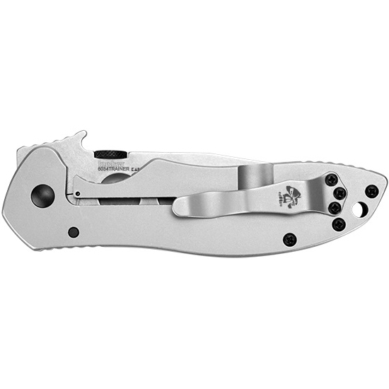 Enter the Kershaw-Emerson E-Train, our “Emerson trainer” knife. The blade is unsharpened so you can safely practice using the “wave shaped opening feature” without endangering either your pocket or your fingers.