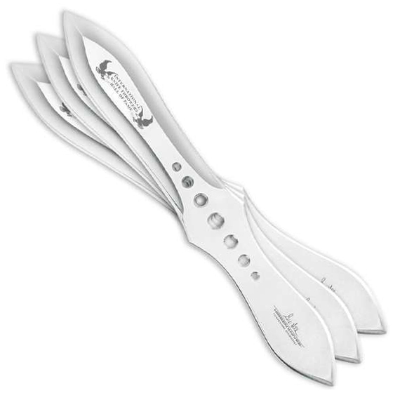 Each piece offers one-piece, 420 stainless steel construction with double edges. Set is presented in a genuine leather sheath. 8 1/2" overall.