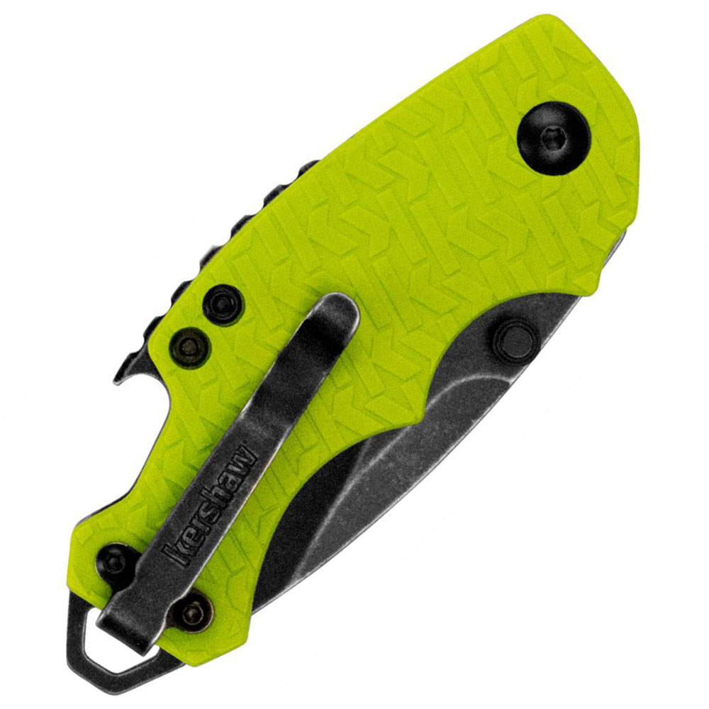 The blade is made of made of a steel known for toughness and durability. The K-Texture handle—composed of a repeating pattern of the Kershaw logo "k"—is exclusive to Kershaw and enhances grip. A liner lock secures the Shuffle's blade open in use, but closes easily when its tasks are done.
