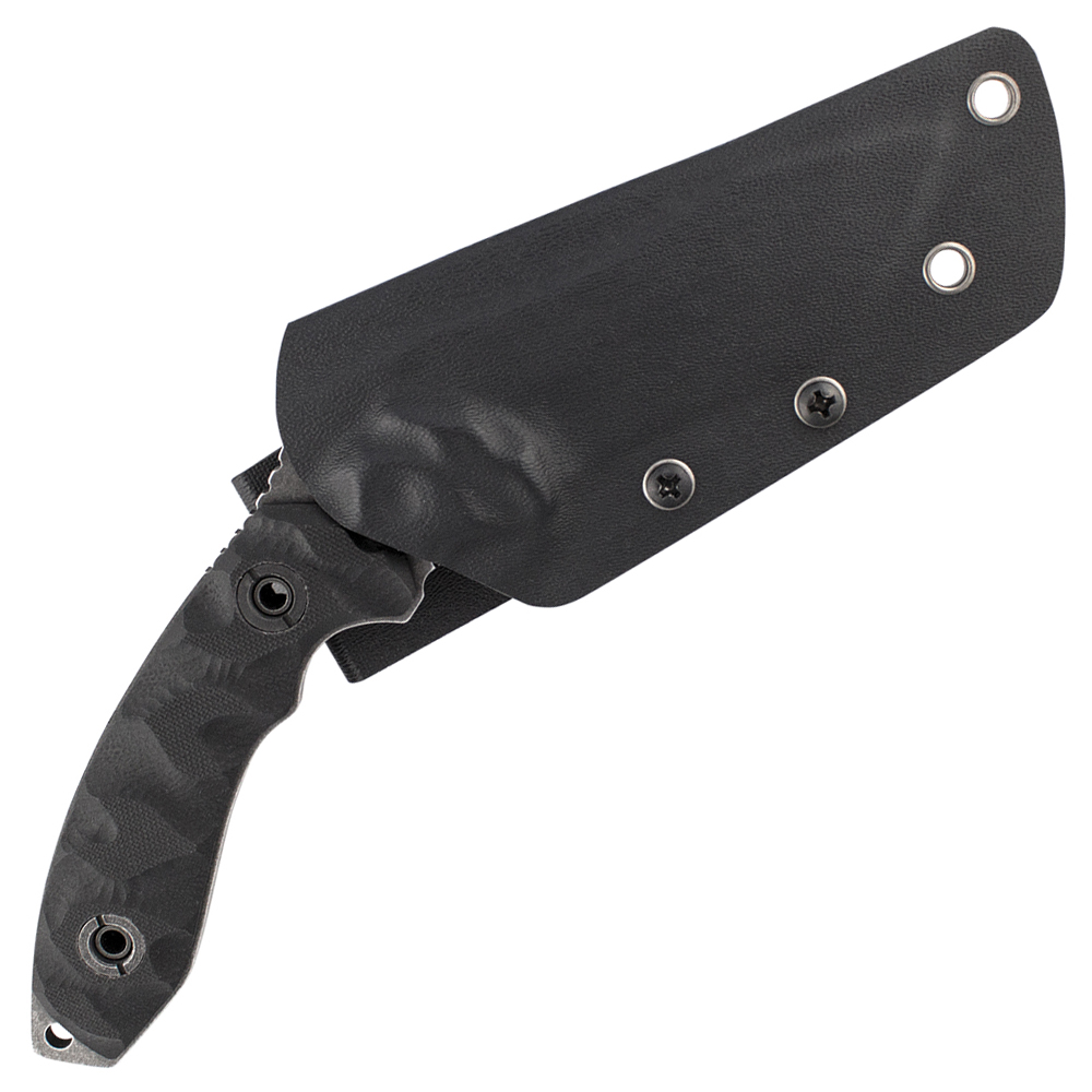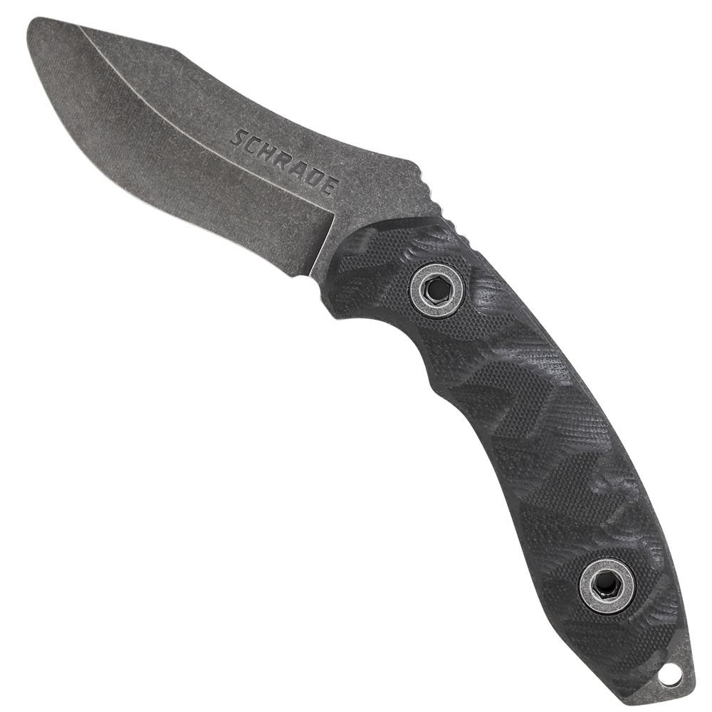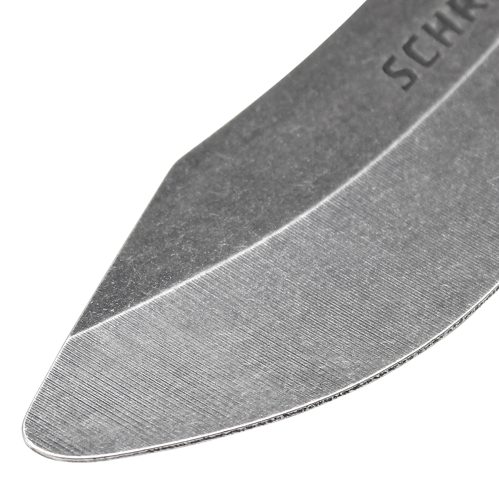 This tactical knife trainer is a dull edge version of the SCHF23, designed for practice and technique training. This is a survival fixed blade, created for use by tactical operators and outdoor enthusiasts. It comes housed in a black Kydex thermoplastic sheath that offers a variety of carrying positions. Grommet holes on the sheath allow for the knife to be secured to a pack or other gear and the belt loop accommodates up to a 2-inch wide belt. The strong full tang blade will resist corrosion from moisture and the stonewash finish adds to its visual appeal. The machined G-10 handle is angled at 45 degrees for more efficient cutting. Jimping on the spine of the handle and an index finger choil allows for strong, positive control. The exposed pommel can be used for crushing or breaking tasks.
