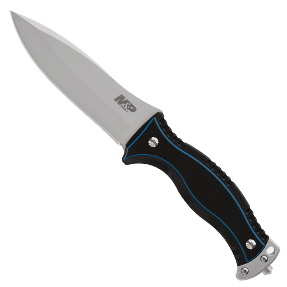 Designed for police officers and other law enforcers, the Smith & Wesson M&P Officer Fixed Knife is made from 8Cr13MoV-steel stainless blade that exhibits extreme toughness and excellent edge retaining capabilities. Its handle is covered in robust G10 scales and also contains a thin edge of blue to symbolize the police department in the US. The included polymer sheath offers multiple carry options with its interchangeable 360 degree rotating metal sheath buckle, adding to its functionality.