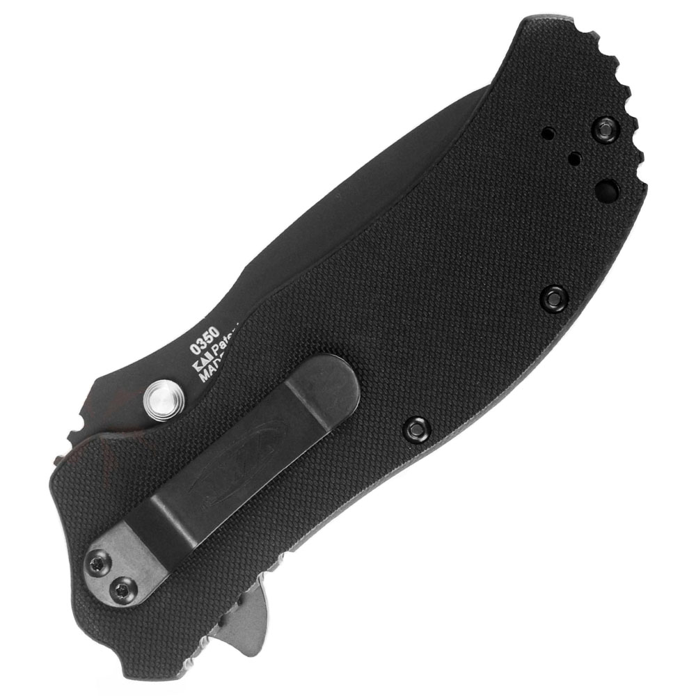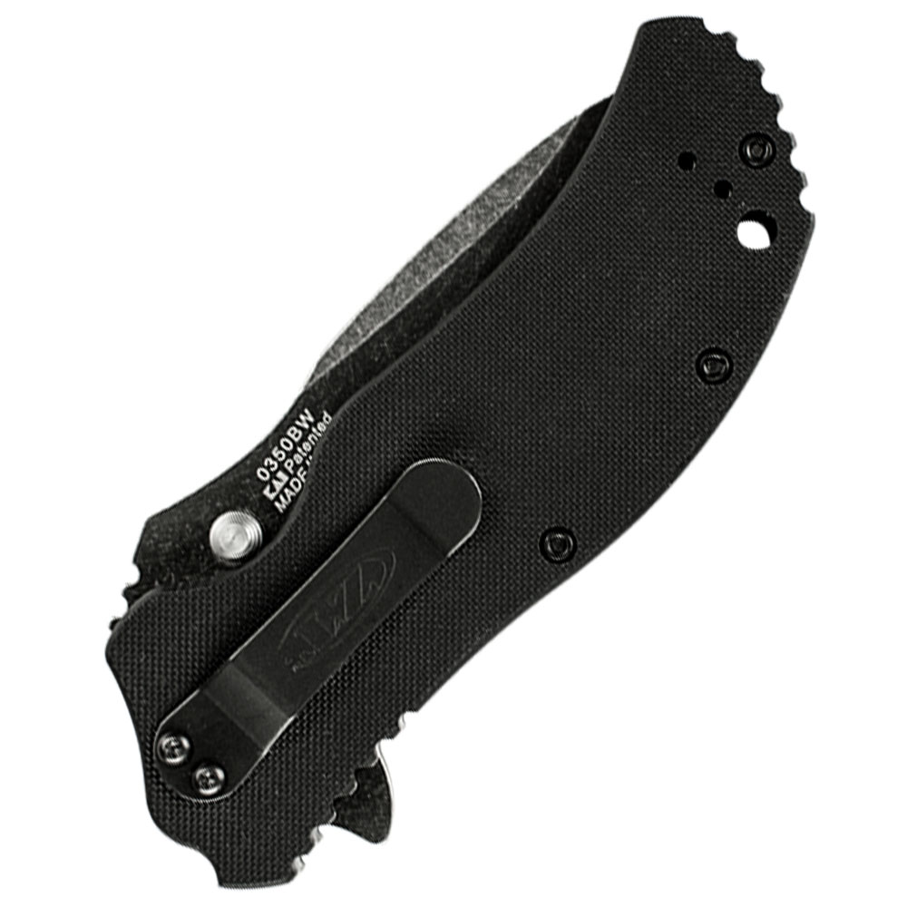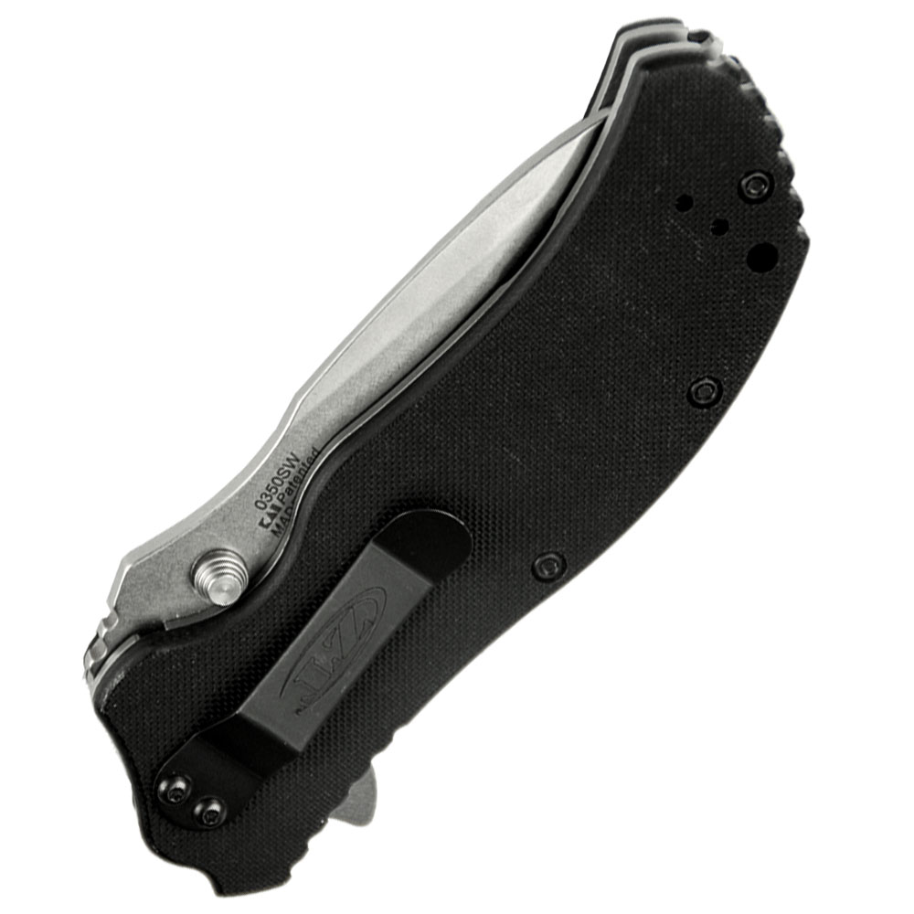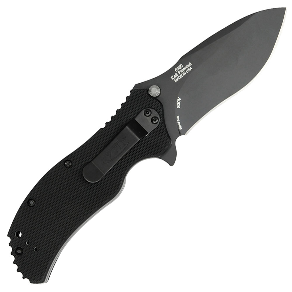 This high-performance S30V blade is paired with textured black G10 scales for a secure grip and excellent mechanical strength even under the roughest conditions. The scales are flat rather than 3D-machined like those of the 0300. A locking liner secures the blade during use. The 0350 also includes ZT’s Quad-mount system for complete versatility. Mount the pocketclip in any of four ways: tip-up, tip-down, on the left side, or the right. There’s a pre-drilled lanyard hole for users who prefer to attach a lanyard.